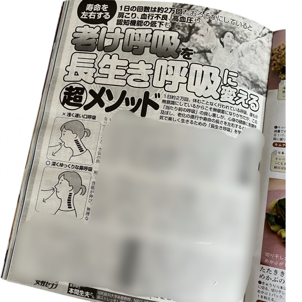 「寿命を左右する老け呼吸を長生き呼吸に変える 超メソッド」と題して本間生夫理事長のインタビュー記事が掲載されました。長生きするための良い呼吸についてのヒントがわかりやすく解説されています。