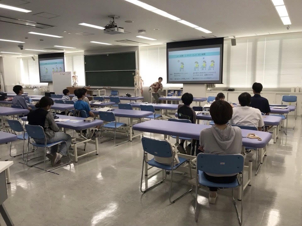 講演では、骨や筋肉についてお話をしたり、聴診器で呼吸の音をきいてもらったりました。またよい呼吸のためにはよい姿勢を保つことが大切であることをお伝えしました。